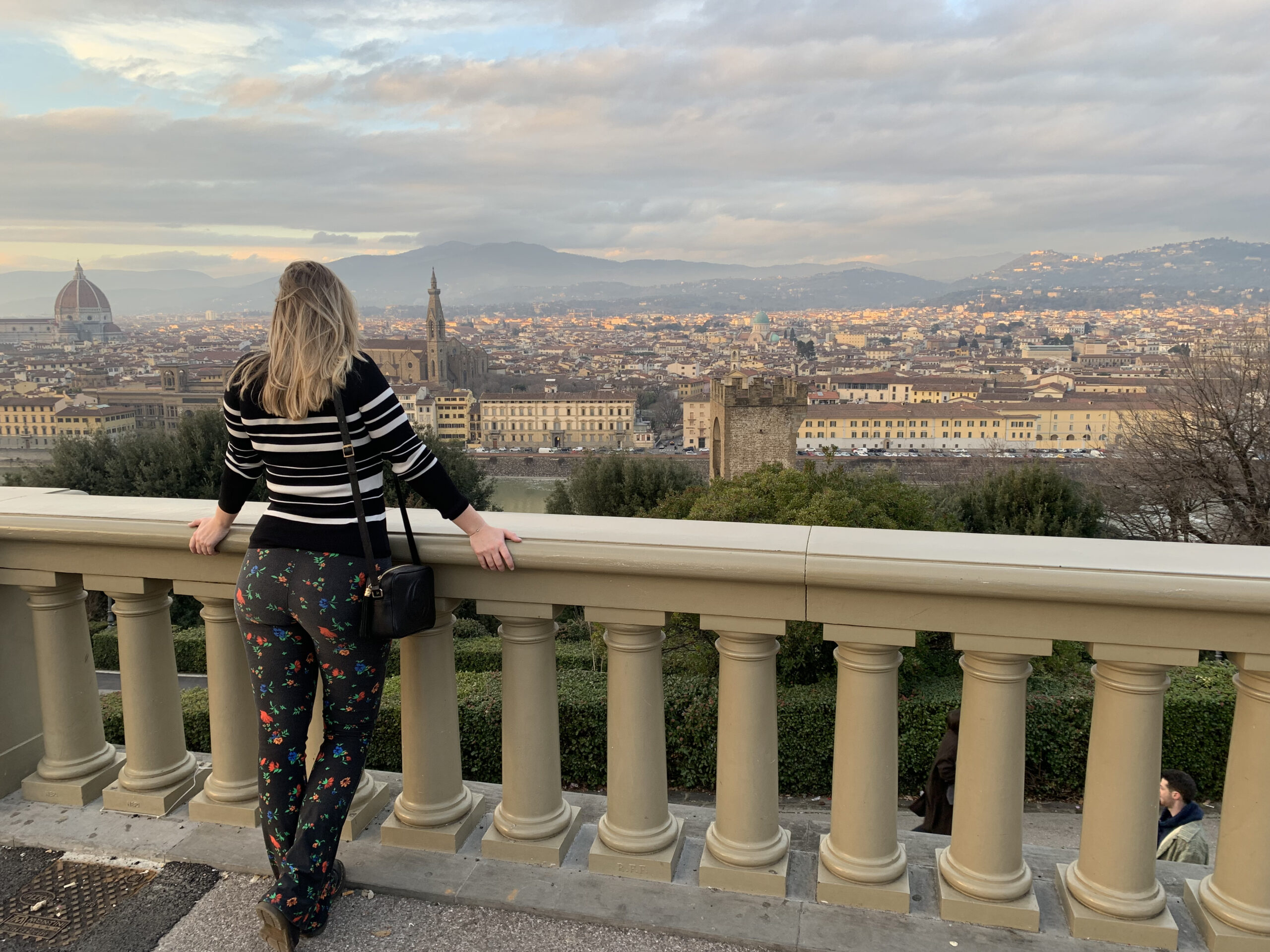 De volgende ochtend sloot ik me aan bij een walking tour. Italiaanse steden voelen als openluchtmusea, en Florence was geen uitzondering. Later die dag vroeg een andere reiziger of ik zin had om met een gehuurd stepje naar een uitzichtpunt te gaan voor de zonsondergang. Zo kwam ik terecht op een prachtig plekje, met het gouden licht over de stad en een gevoel van totale vrijheid.